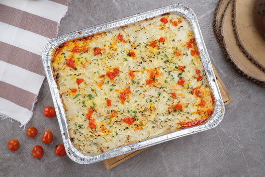 Baked Salmon with Mustard Cream and Garlic Pasta
