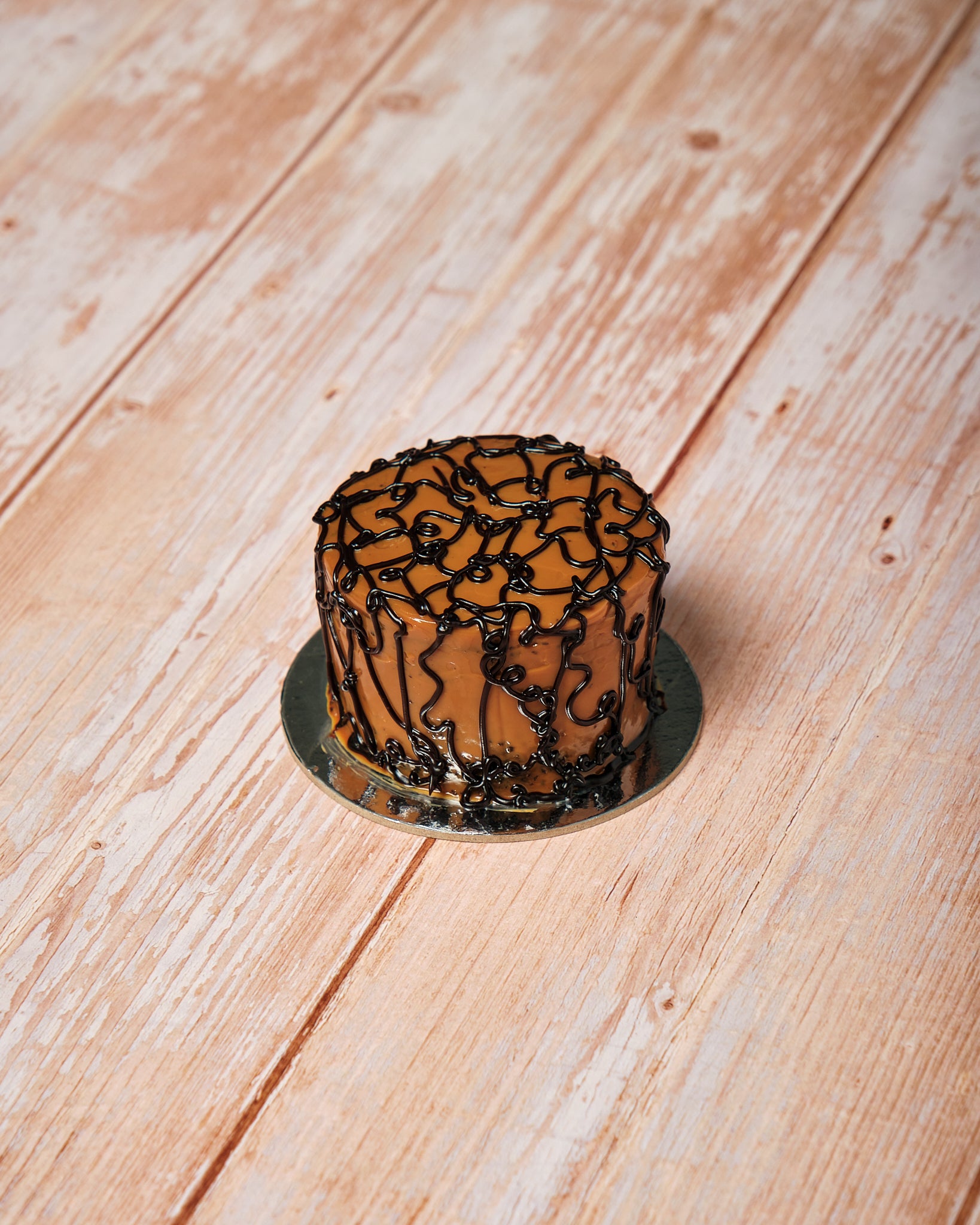 Our best-selling Chocolate Caramel Cake, now elegantly presented in a round acrylic container for easy storage and a touch of sophistication.